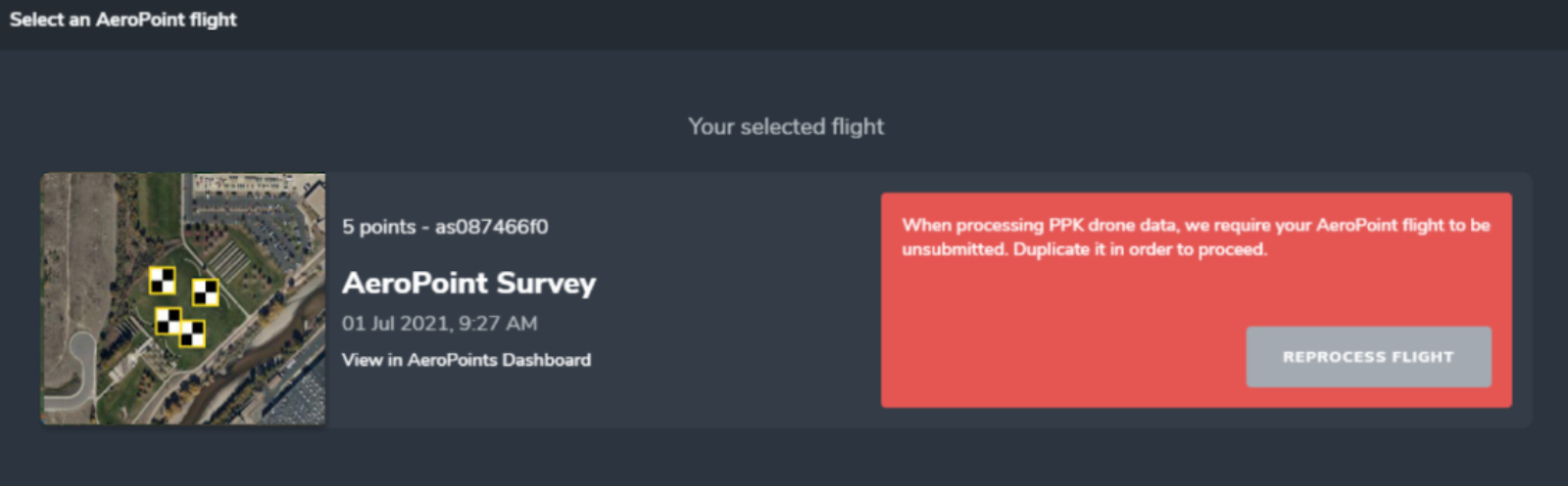 To submit PPK data, select an unprocessed AeroPoint survey from your AeroPoint captures.