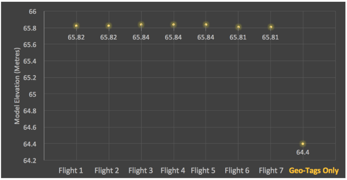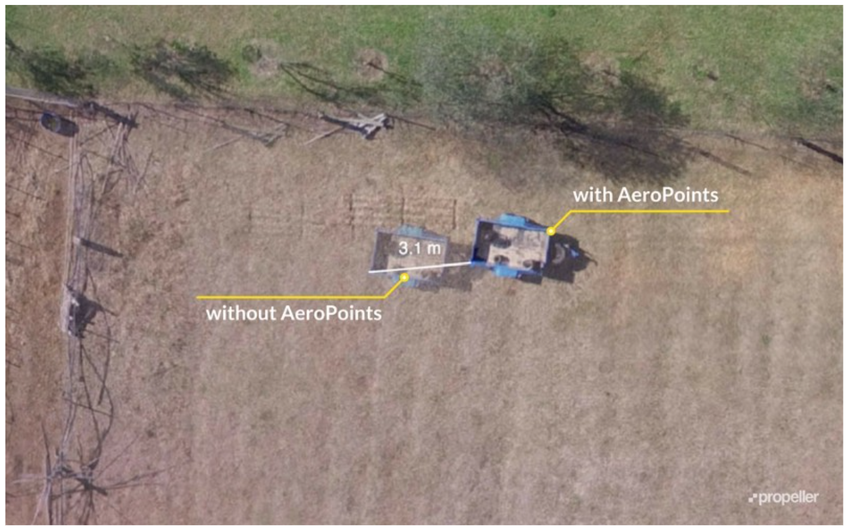 Example planar shift between data sets generated with AeroPoints and those using just onboard geotags